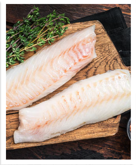 Cod has a mild, clean flavour with a hint of sweetness, making it a versatile and popular white fish. Its texture is firm yet flaky, with a moist, tender quality when cooked properly. The taste is subtle and not overly “fishy,” appealing to a variety of palates. Cod’s light, delicate taste makes it a favourite in both traditional and modern seafood dishes.